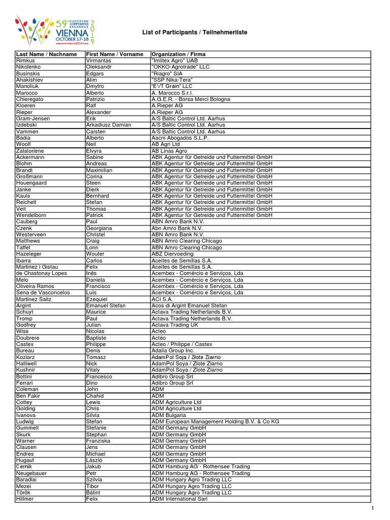 List Of Participants Companies