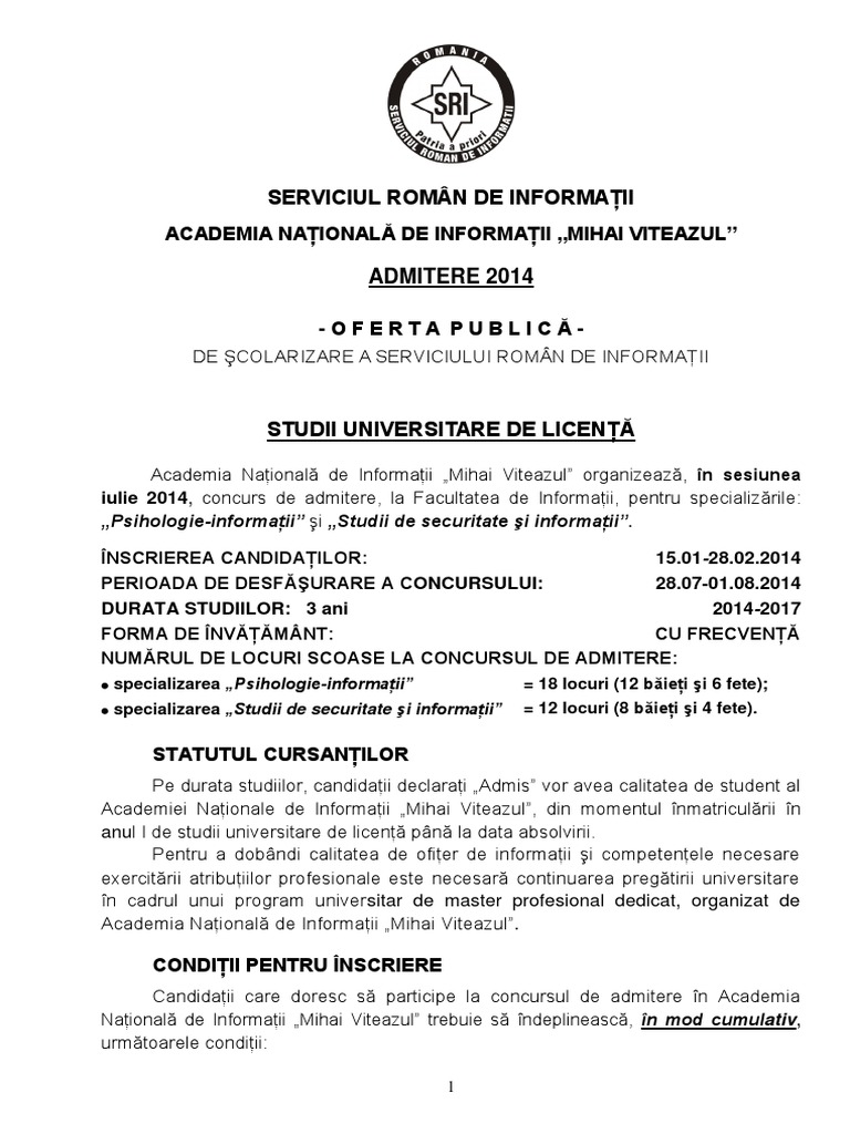 Studii De Licență Pentru A Deveni Ofițer Sri Serviciul Roman De Informații