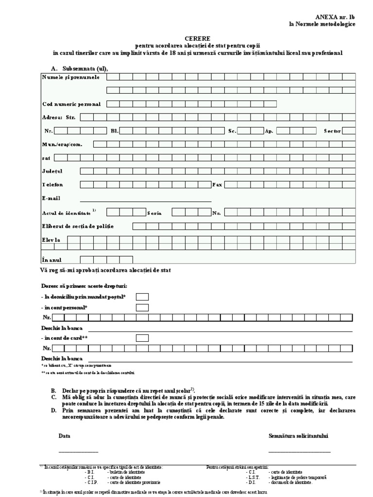 Cerere Tip Alocatie De Stat Pentru Tineri De Peste 18 Ani