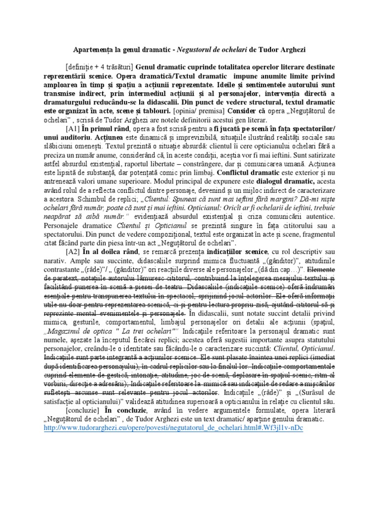 Model Argumentare Genul Dramatic Model Autor Texte