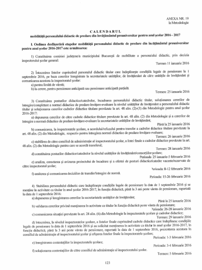 Calendarul Mobilității Profesorilor 2019 2020 Termenele Pentru