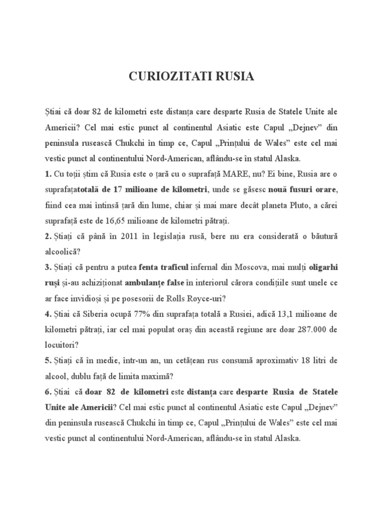 Curiozitati Despre Rusia