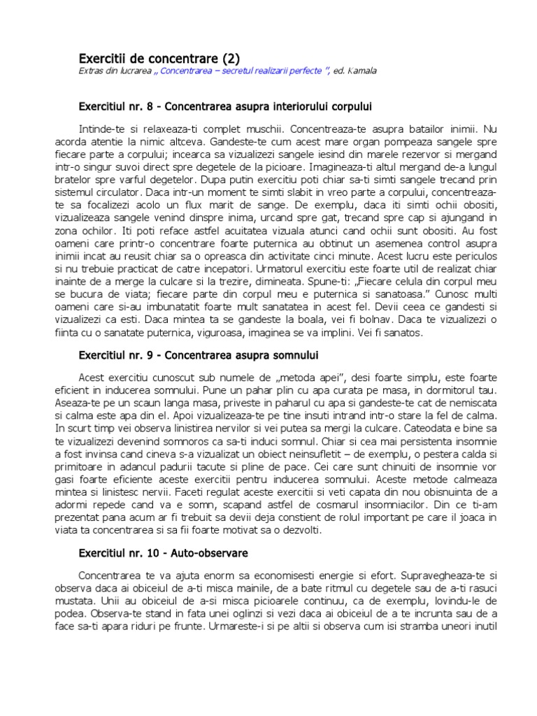 Exercitii De Concentrare