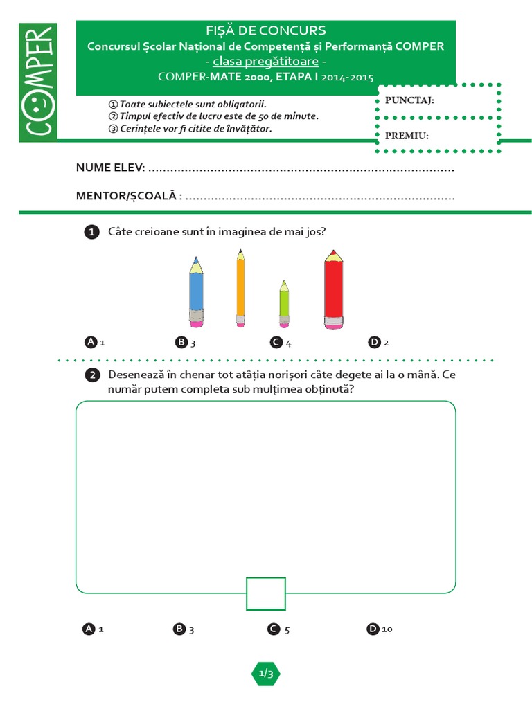 Concurs Comper Clasa Pregătitoare Matematica Pentru Pitici