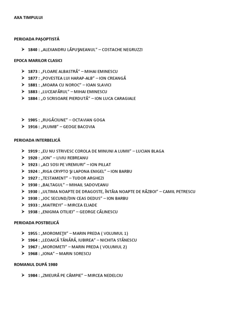 Anii Aparitiei Operelor Pentru Bac