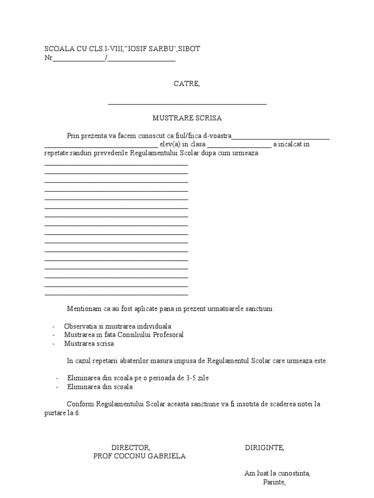 Model Referat Privind Savarsirea Unei Abateri Disciplinare