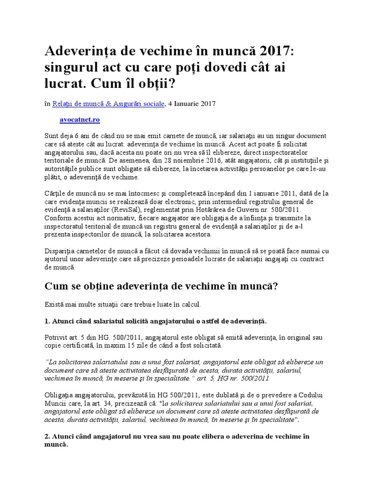 Adeverința De Vechime In Muncă 2017