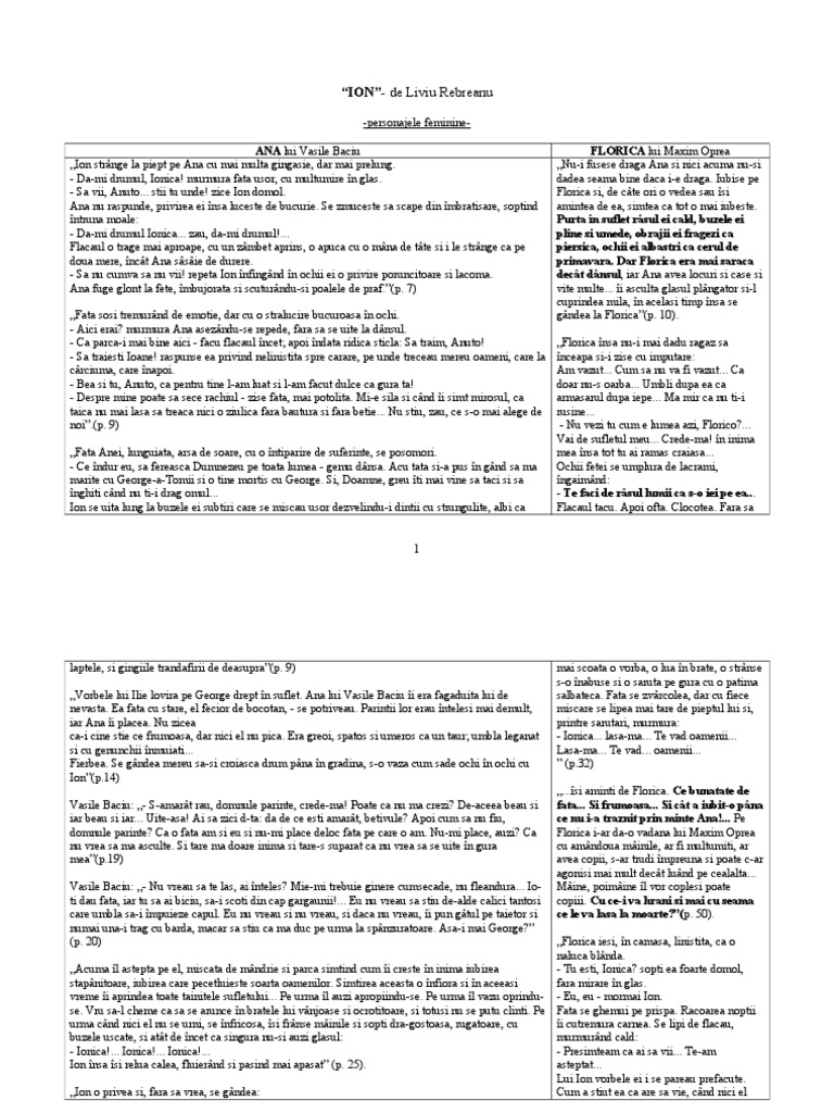Istorie Vie Fata Lui Ion și A Anei Personajele Lui Liviu