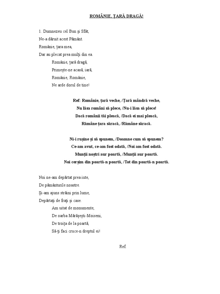 Versuri Romanie Tara Draga