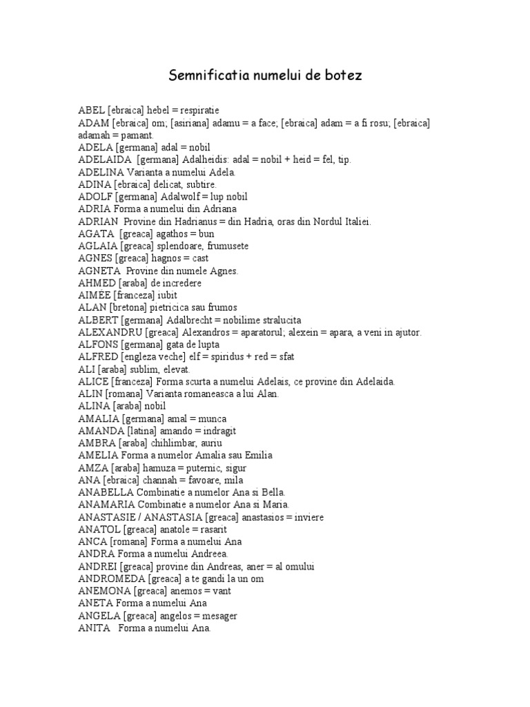 Semnificatia Numelui De Botez