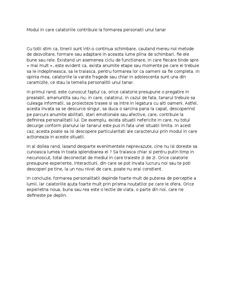Modul In Care Calatoriile Contribuie La Formarea Personatii Unui Tanar