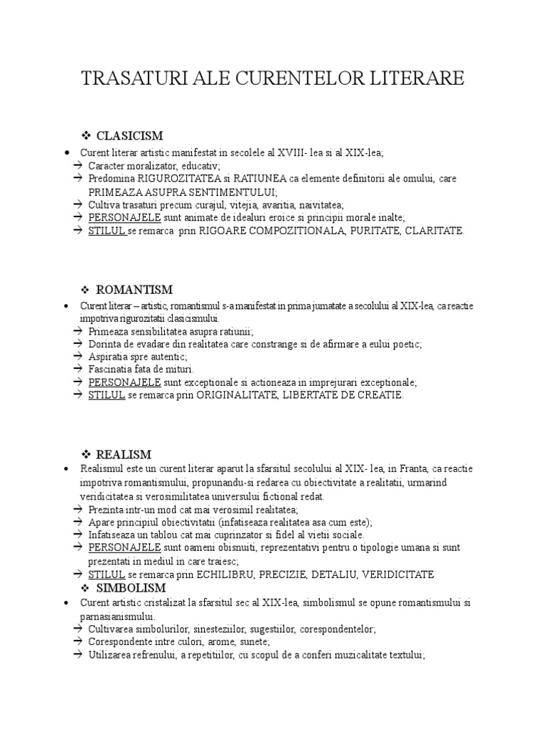 16 Trăsăturile Curentelor Literare Ilustrate In Texte Lirice